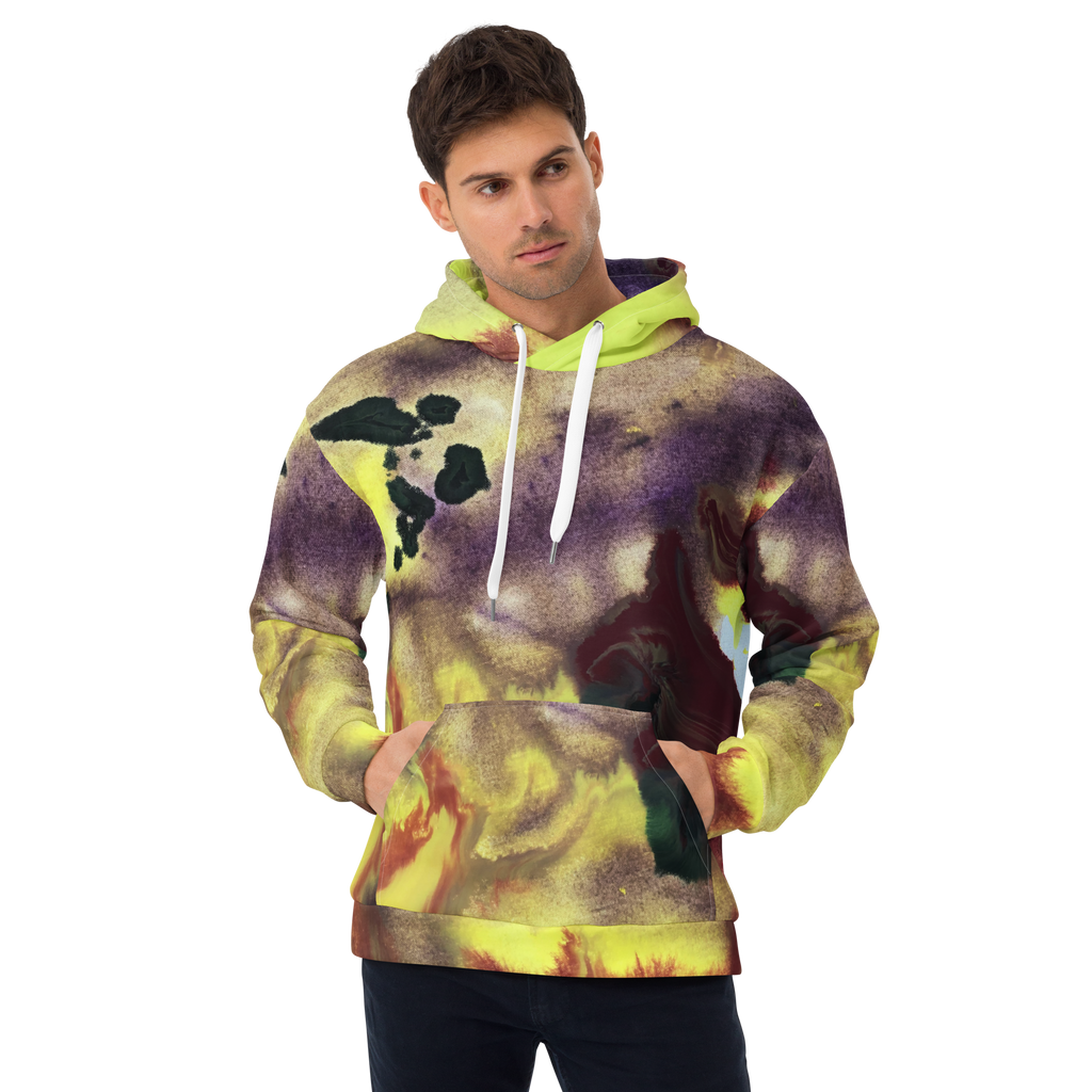 Our Cloud Poetry Nebula Resurrection hoodie will protect even the wiliest of adventurers on their intergalactic and earthly travels. Featuring the softest brushed fleece inside and a vibrant, glowing combustible palette outside. The hoodie has a relaxed fit, and it’s perfect for wrapping yourself into on a chilly evening.
